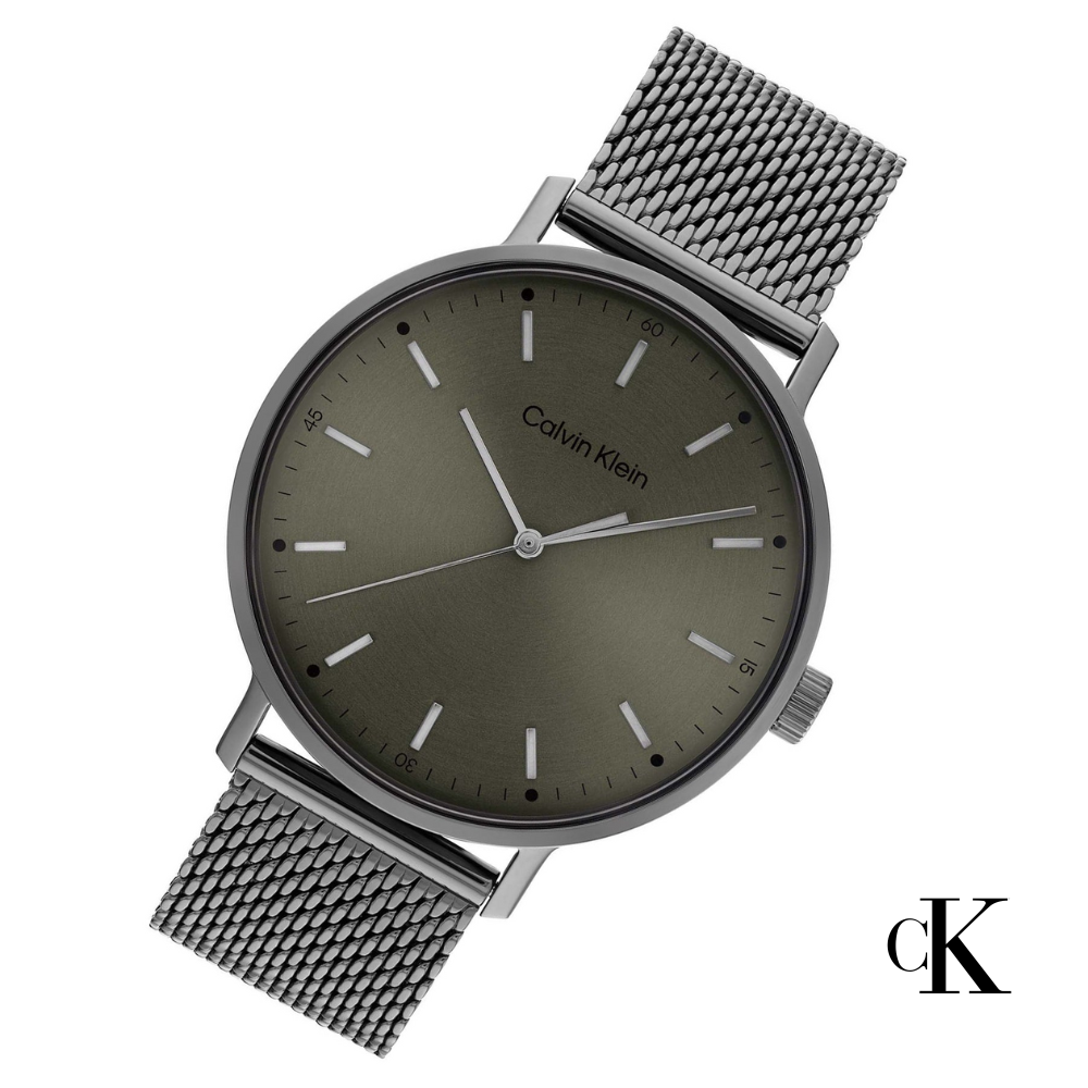 Calvin Klein 25200048 Grey Mesh Green Dial Watch 42mm